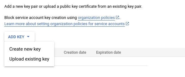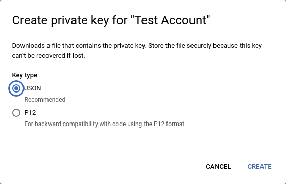 Note that your browser will now download a file. This file contains all the information required to log into the service account. You will need this later, so you can give Datawisp access to the service account.